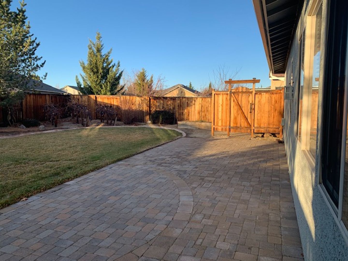 3 Bedrooms. 2 Bathrooms. 3 Car Garage. Rent $2,900, Deposit $2,890.1,769 sq. ft. Includes Fridge, D/W, gas range, microwave, W/D hook-ups, A/C, fireplace and double pane windows. Two pets of 40 lbs. or under, upon approval, with an additional security deposit of $500 per pet. HIGHLY, HIGHLY UPGRADED and SHOWS LIKE NEW best describe this fabulous single-story home in the upscale gated community of Vineyards Village in Sparks near Sparks Blvd. and Disc Drive. The property is on a low traffic dead end street and has great curb appeal that is created by the lush landscaping, a paver stone driveway/walkway and a handsome front exterior elevation. Upgrades include beautiful ENGINEERED HARDWOOD FLOORING everywhere except the kitchen, bathrooms and the master bedroom walk-in closet that all have upgraded tile flooring; vanities with granite countertops in both of the bathrooms; a laundry room with a large custom storage cabinet, a hanging rod and a folding table; the potential to have surround sound throughout the home; 2-inch faux wood blinds throughout; distressed wood ceiling fans and upgraded light fixtures. The floor plan is open with the extra-large gourmet kitchen, that is the center piece of the house, having everything that one could imagine including lots and lots of solid granite countertop space with upgraded counter-to-cabinet tiled back splash, loads of upgraded white cabinets and drawers with soft close, stainless steel appliances, a deep farmhouse sink, a pantry and a built-in breakfast nook bench with storage that merges as one with the very large great room that has an ornamental gas log fireplace. The sizable master suite has a large master bedroom with a ceiling fan; a large master bathroom with a raised vanity with his and hers sinks, an extra-deep garden tub and a separate walk-in shower plus a walk-in closet. Additional features include high ceilings throughout; lots of light giving windows throughout and an oversized finished 3 car garage with a work bench, storage benches and pegboards. OUT BACK YOU WILL FIND TOTAL PRIVACY, MORE LUSH LANDSCAPING, GRAPE VINES AND A VERY LARGE PAVER STONE PATIO with a paver stone sidewalk down one complete side of the house to the side gate plus lots of shade on those warm summer days/evenings as the home faces west. The location could not be better given that you are within minutes of the fabulous Sparks Galleria Shopping Center, Walmart and Kohl's. The tenant is responsible for landscape care. Tenant pays G, E, W, T & S. 1-year lease.
